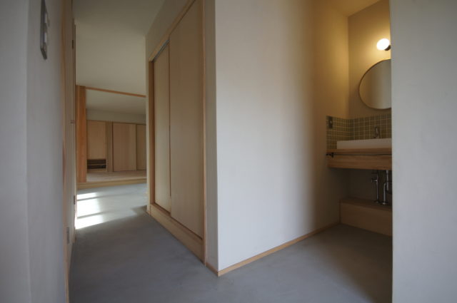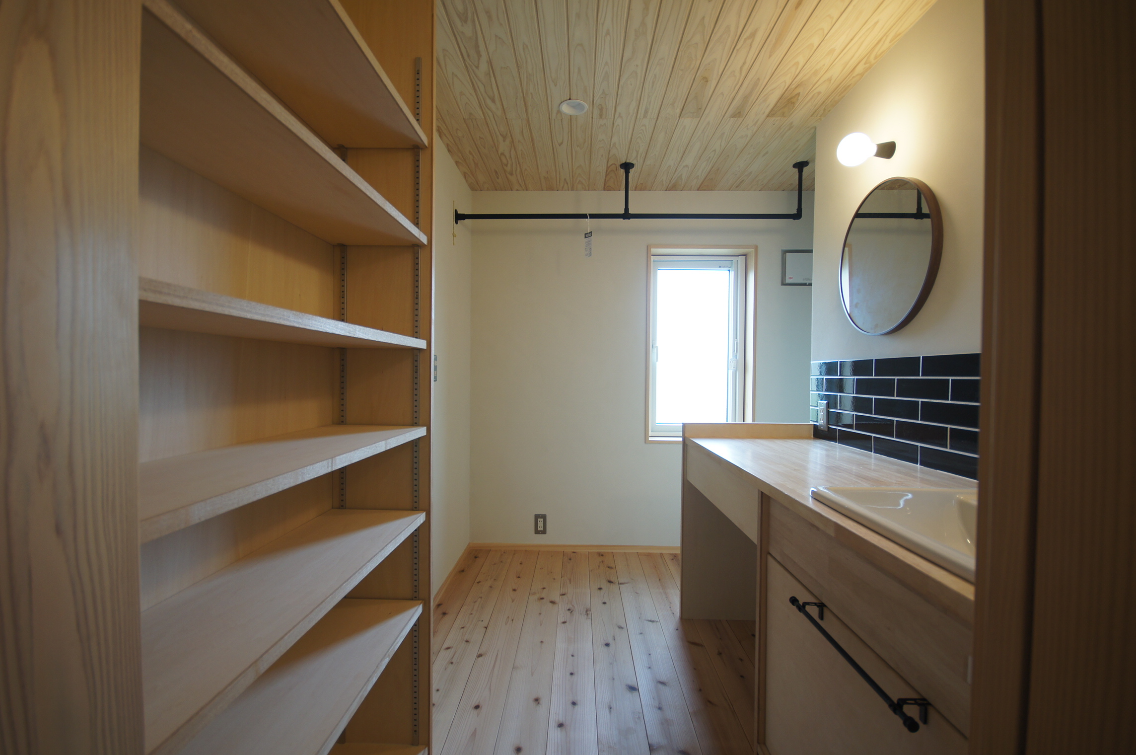 沢山の道具をスムーズに出し入れできるウォークスルーの土間収納。